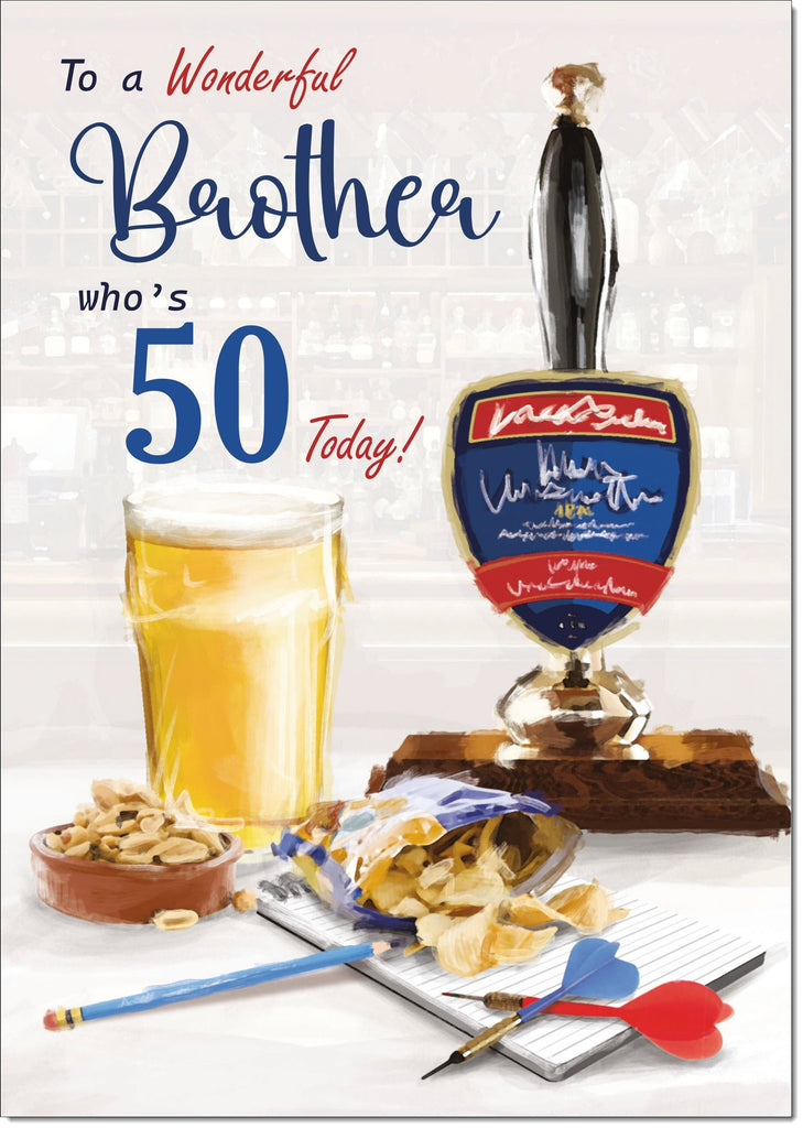 Brother 50th Birthday Card Age 50 Draft Beer