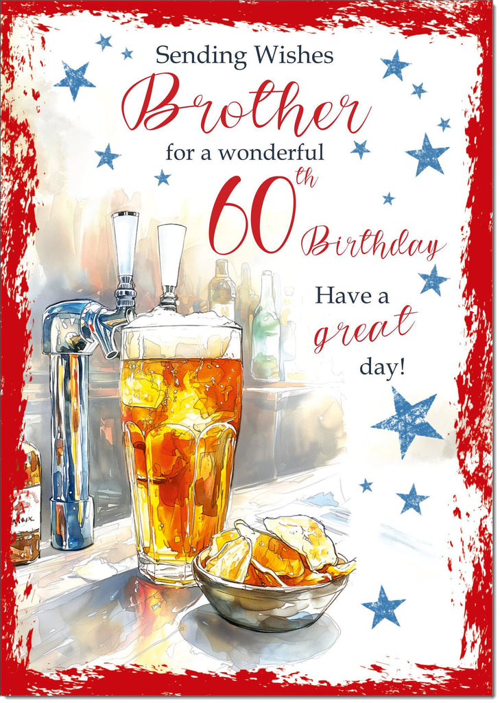 Brother 60th Birthday Card Age 60 Beer and Crisps