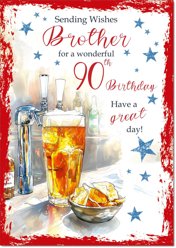 Brother 90th Birthday Card Age 90 Beer and Crisps