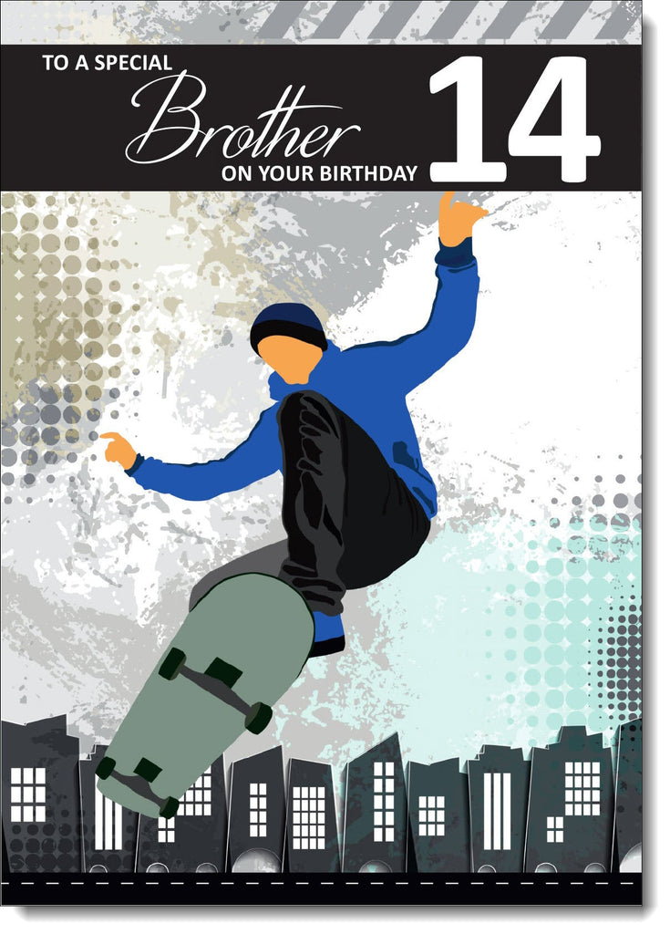 Brother 14th Birthday Card Age 14 Skateboarding