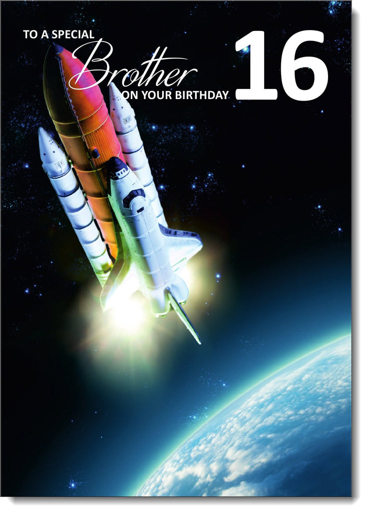 Brother 16th Birthday Card Age 16 Rocket Ship in Space