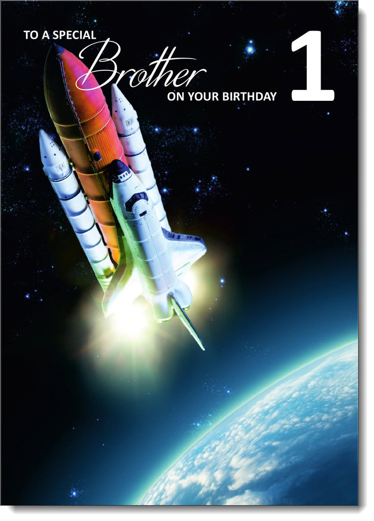 Brother 1st Birthday Card Age 1 Rocket Ship in Space