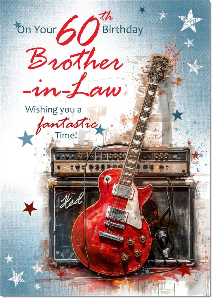 Brother-in-Law 60th Birthday Card Age 60 Guitar