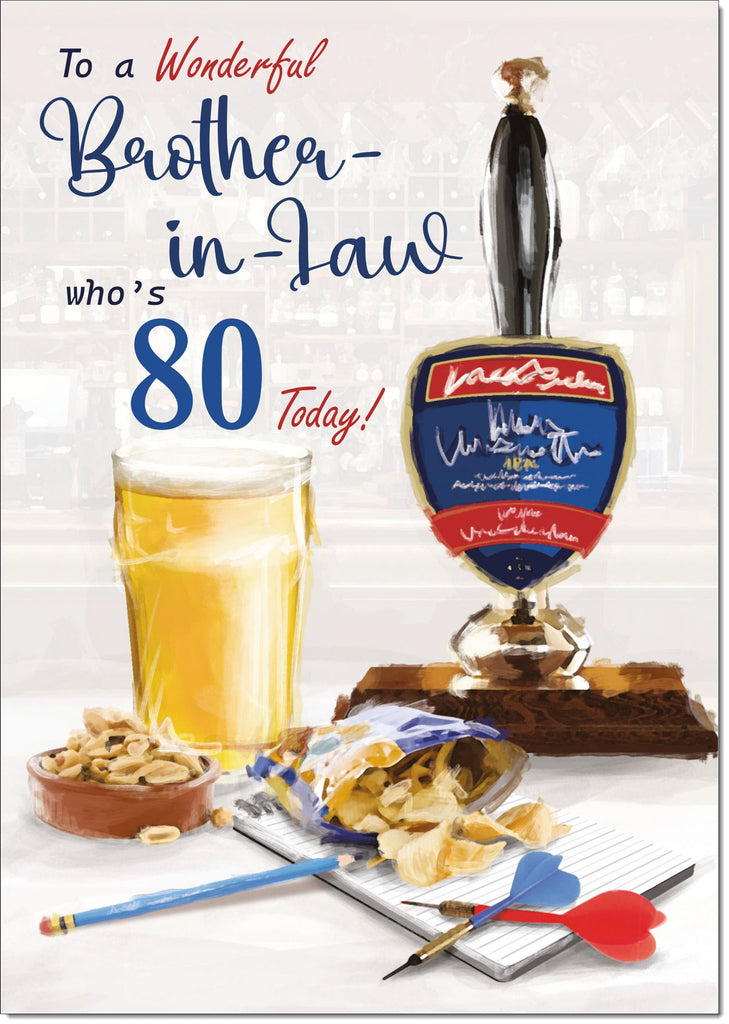 Brother-in-Law 80th Birthday Card Age 80 Draft Beer