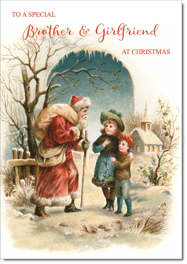 Brother & Girlfriend Christmas Card Victorian Santa Painting