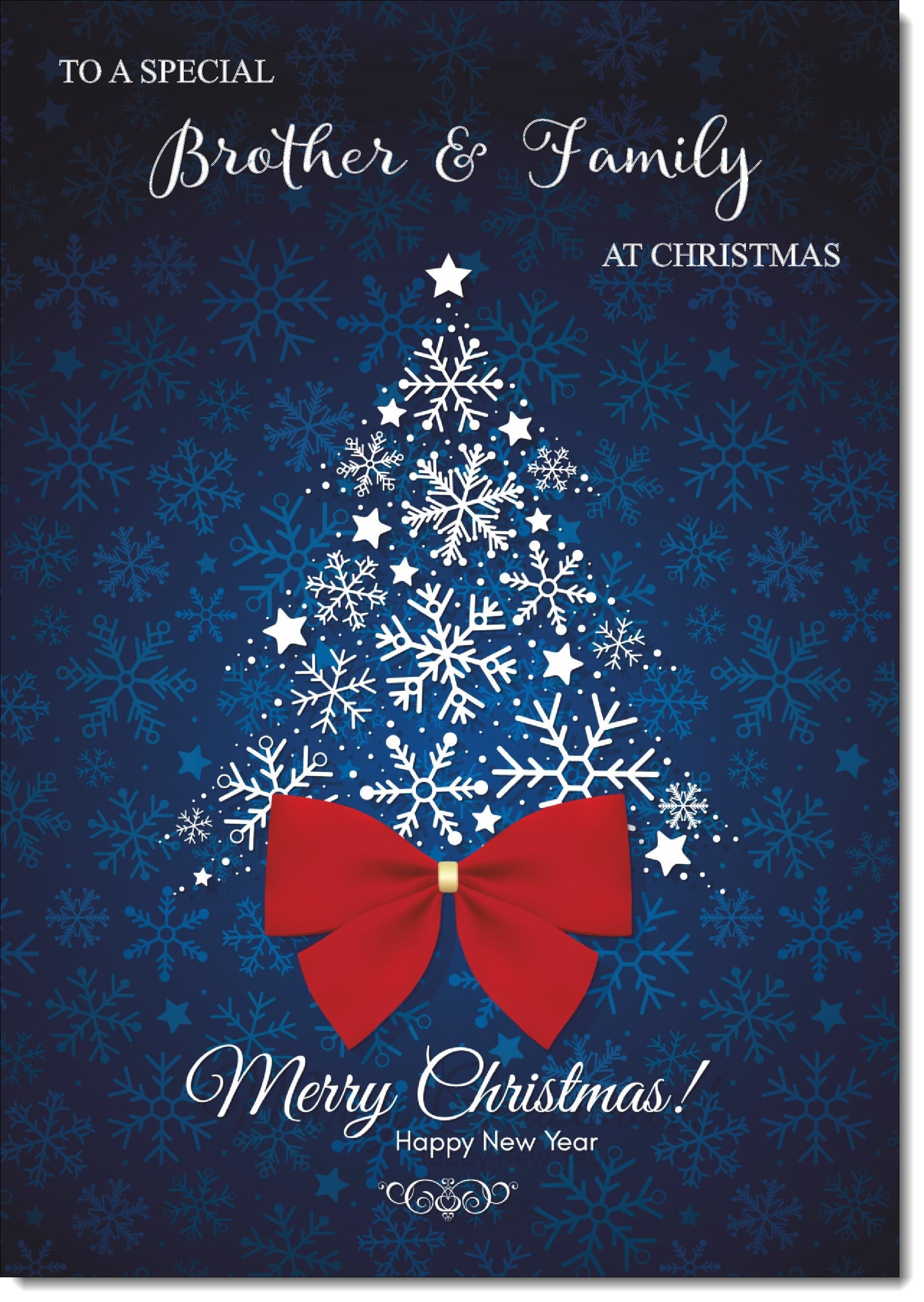 Brother & Family Christmas Card Blue Abstract Christmas Tree