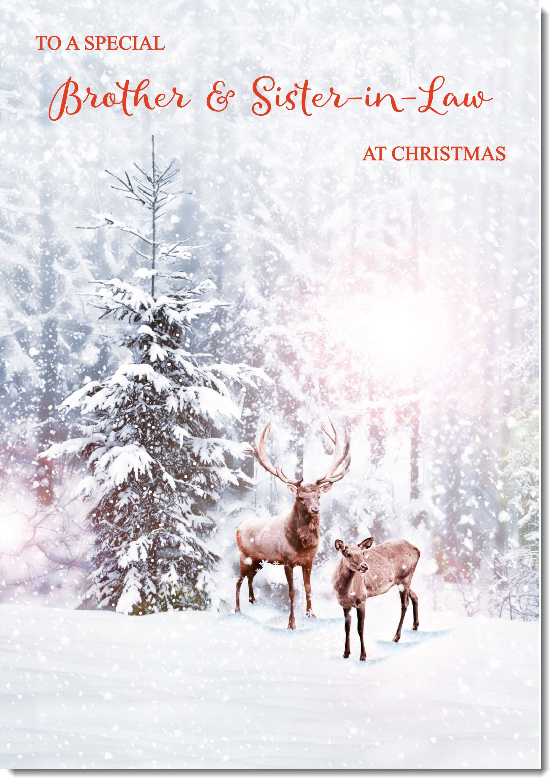 Brother & Sister-in-Law Christmas Card Stag and Doe in Snowy Forest