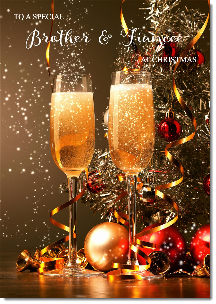 Brother & Fiancee Christmas Card Two Champagne Glasses