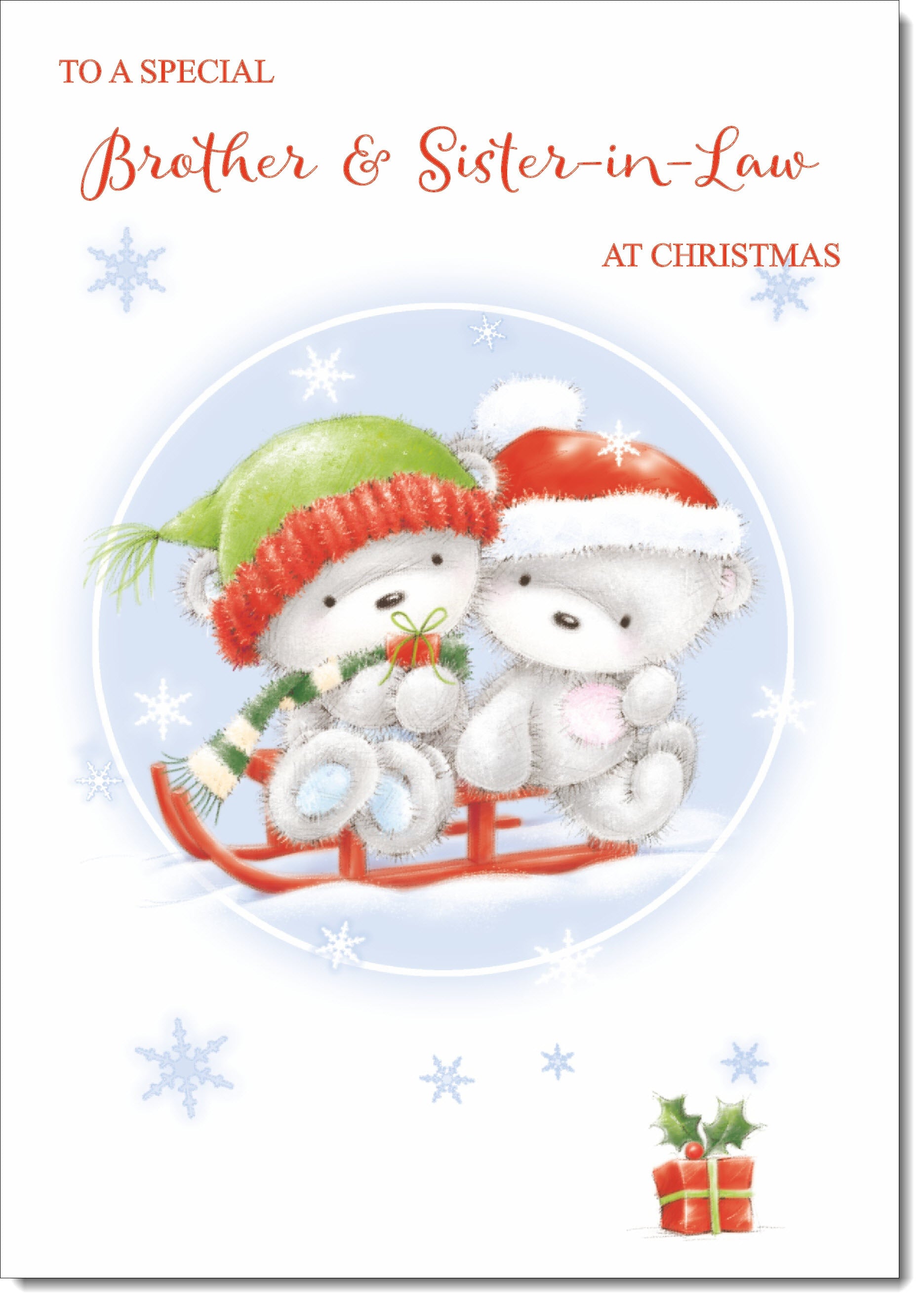 Brother & Sister-in-Law Christmas Card Cute Bears on Sled