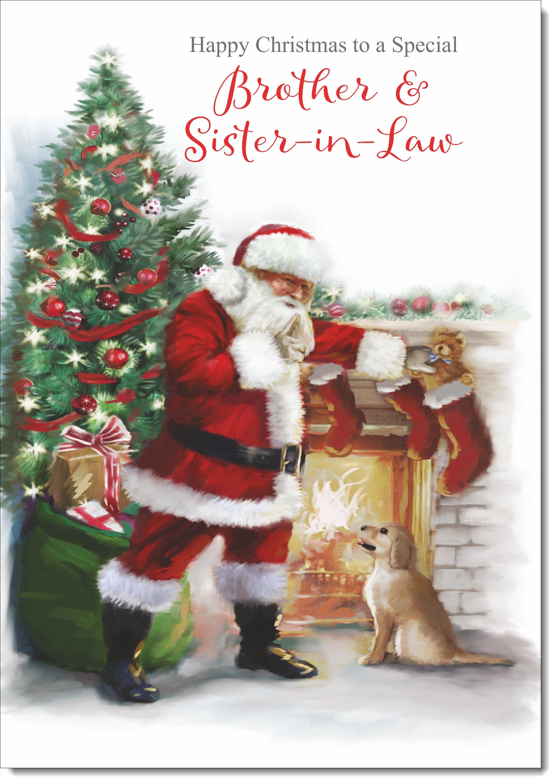 Brother & Sister-in-Law Christmas Card Santa by Christmas Tree