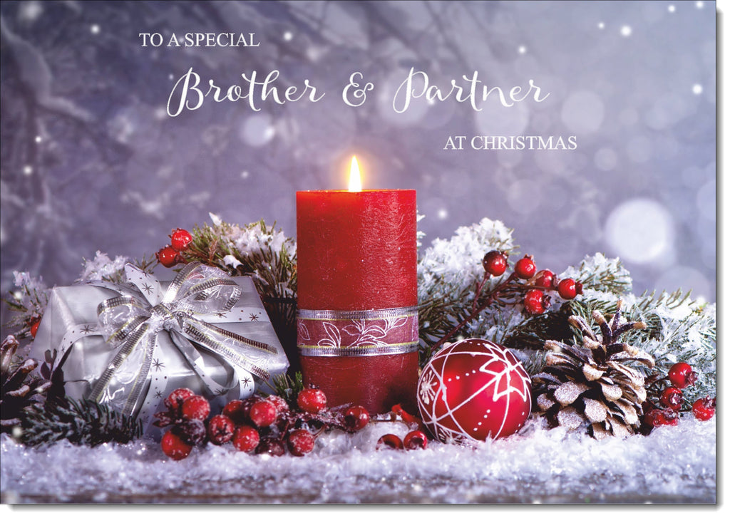 Brother & Partner Christmas Card Red Roses Christmas Arrangement