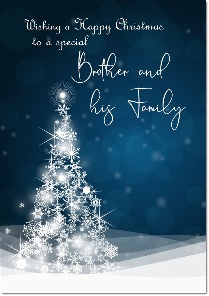 Brother & Family Christmas Card Blue Abstract Christmas Tree