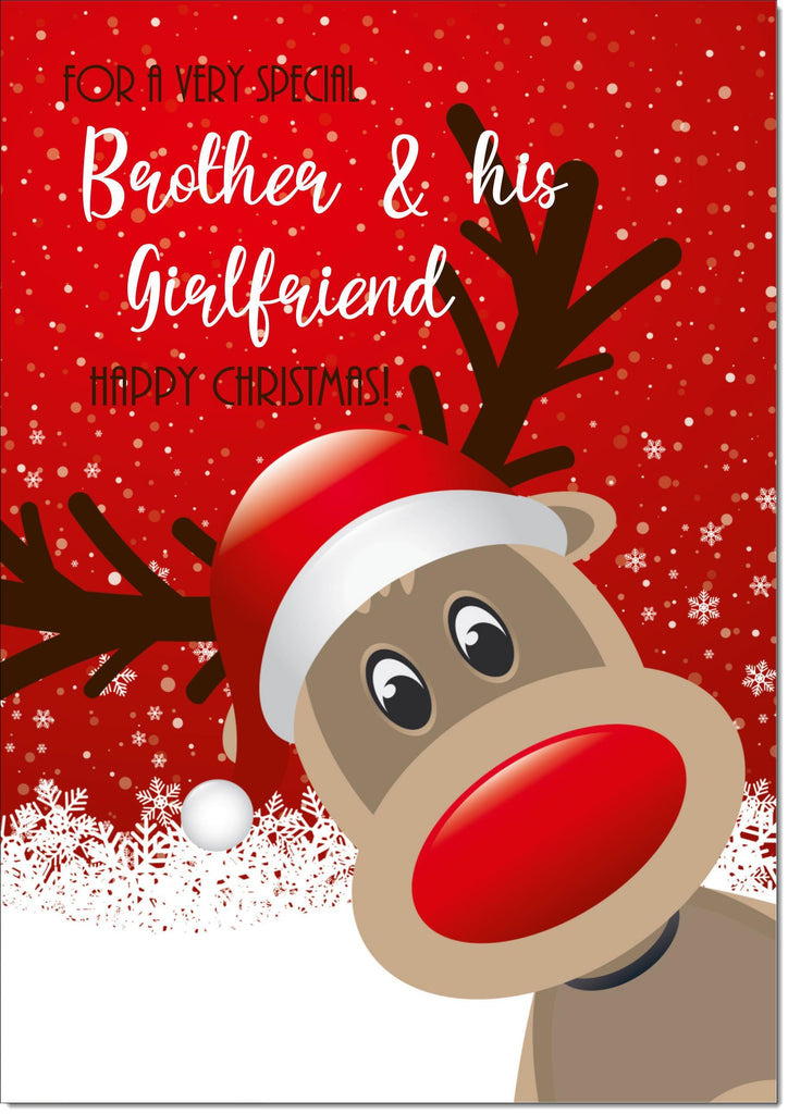 Brother & Girlfriend Christmas Card Rudolph in Snow