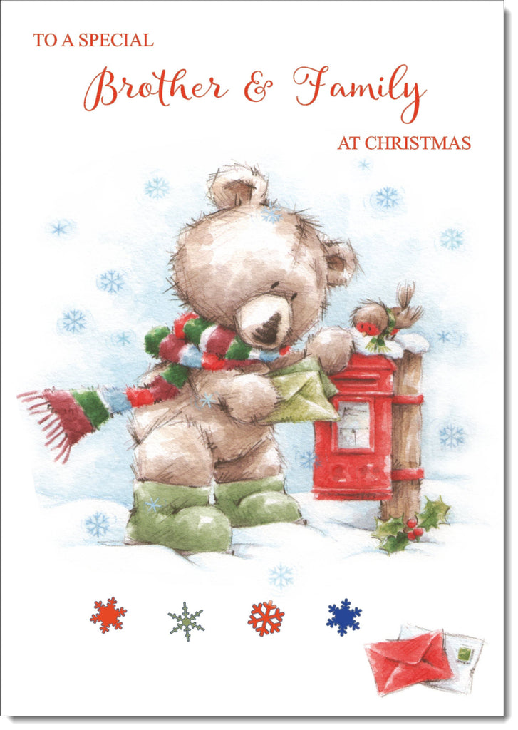 Brother & Partner Christmas Card Cute Bear at Post Box