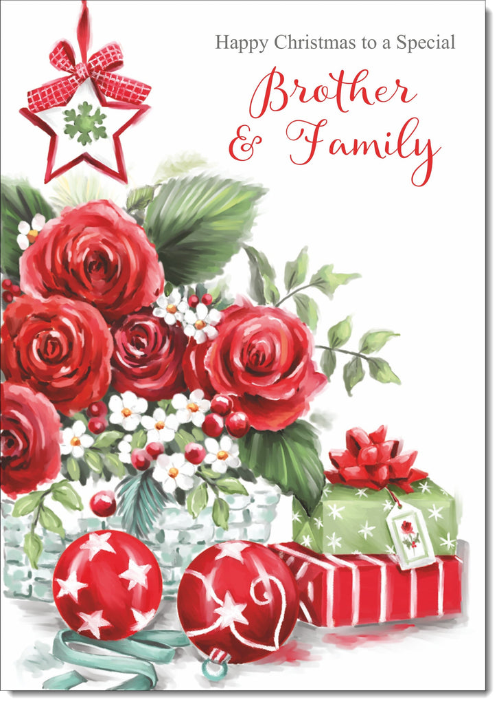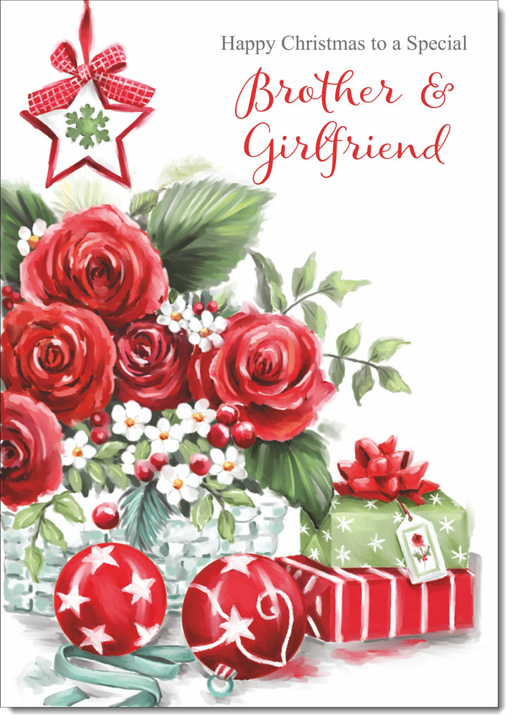 Brother & Girlfriend Christmas Card Red Christmas Roses