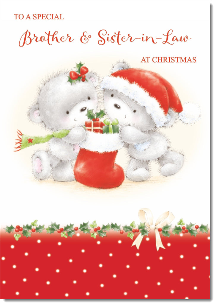 Brother & Sister-in-Law Christmas Card Cute Bears with Stocking