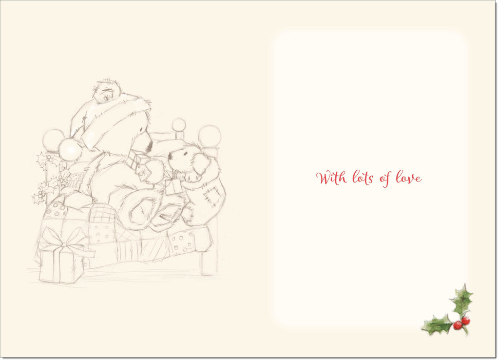 Our Dog To Your Dog Christmas Card Cute Bear on Bed