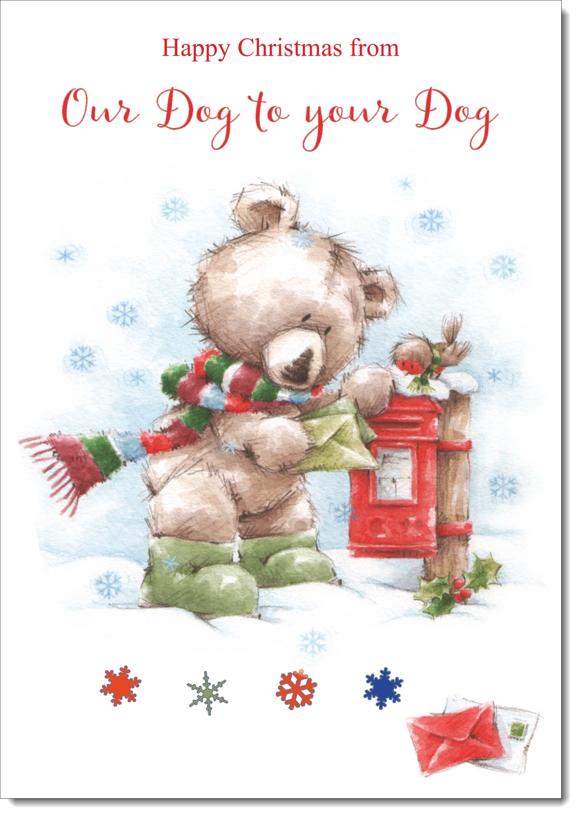 Our Dog To Your Dog Christmas Card Cute Bear at Post Box