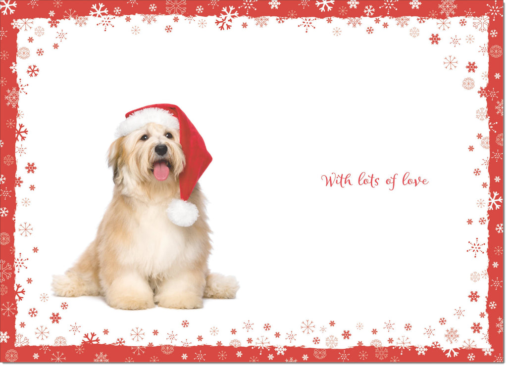 Our Dog To Your Dog Christmas Card Fluffy Dog in Santa Hat