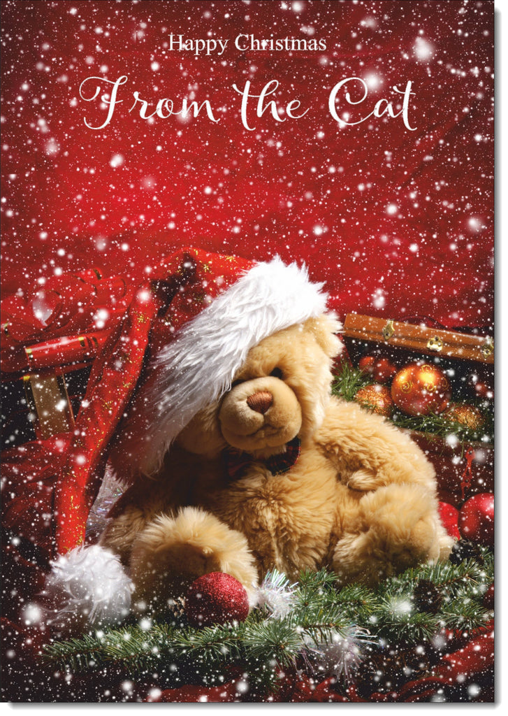 From The Cat Christmas Card Teddy Bear in Santa Hat
