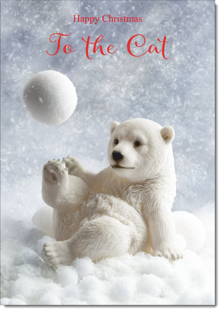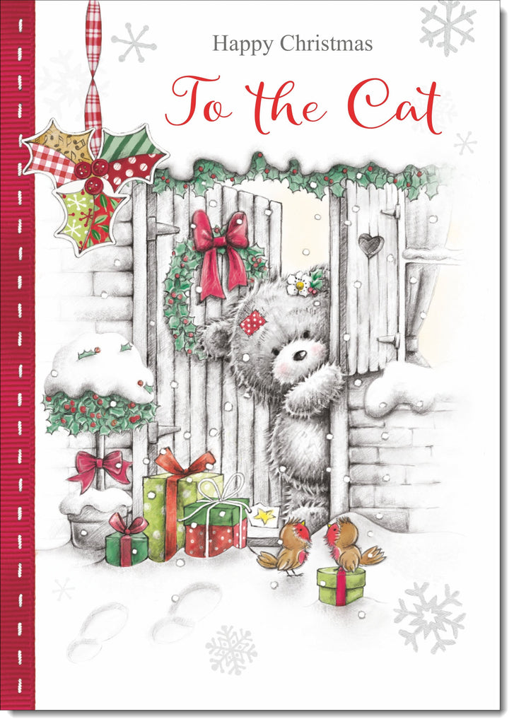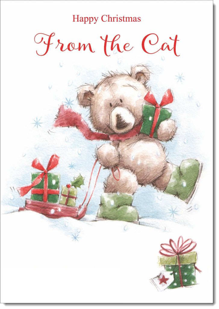 To The Cat Christmas Card Cute Bear in Christmas Parcel
