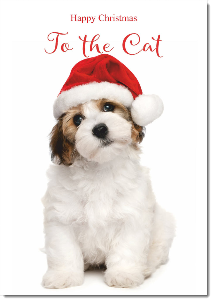 To The Cat Christmas Card Fluffy Dog in Santa Hat