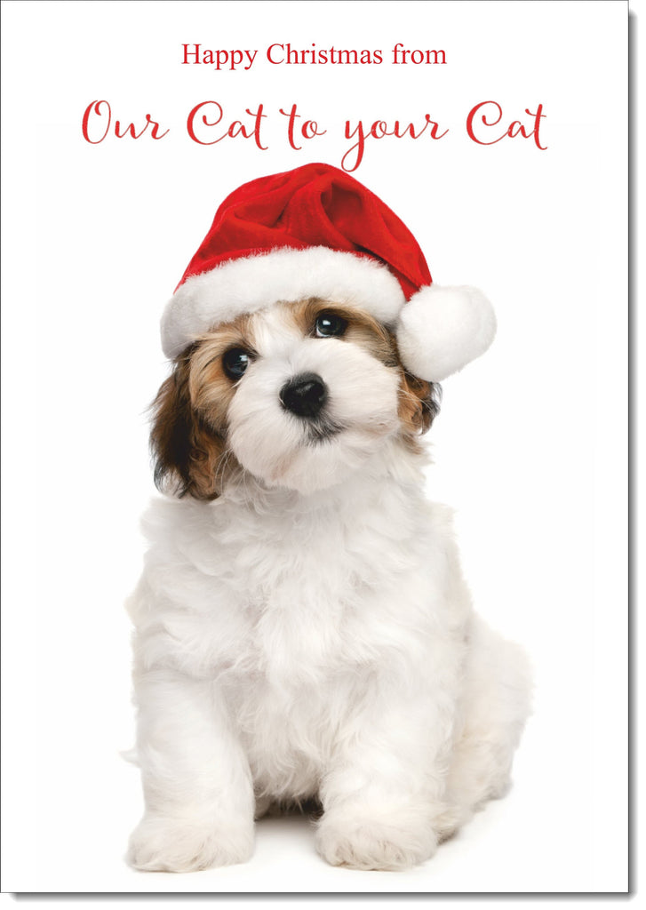 Our Cat To Your Cat Christmas Card Dog and Santa Hat