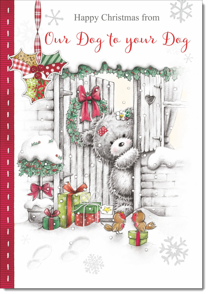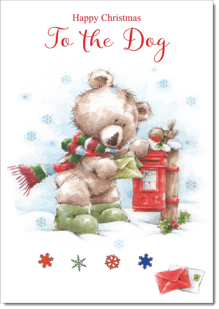 Our Dog To Your Dog Christmas Card Cute Bear at Post Box
