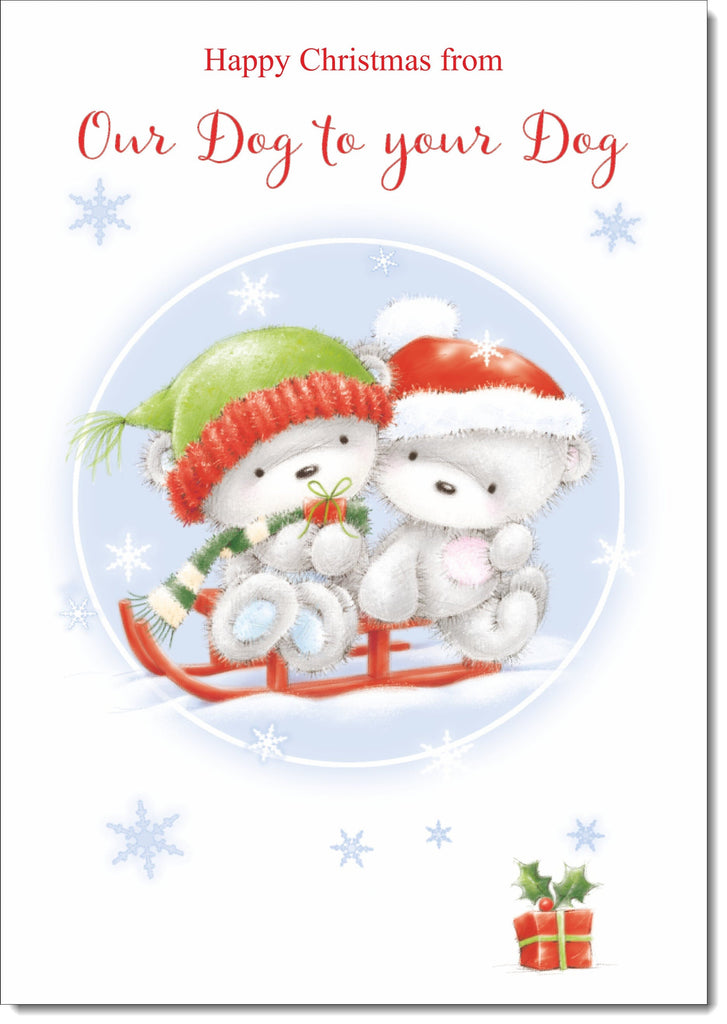 Our Dog To Your Dog Christmas Card Cute Bears on Sled