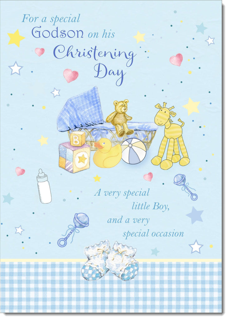 Godson Christening Card Moses Basket