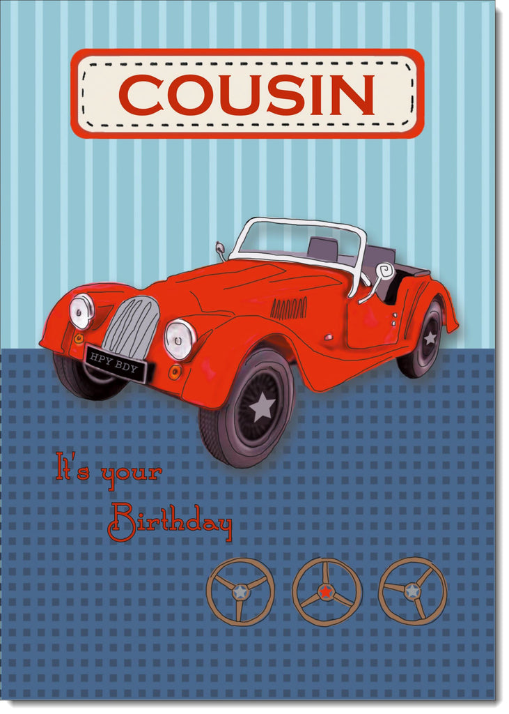 Cousin Birthday Card for Him Vintage Car