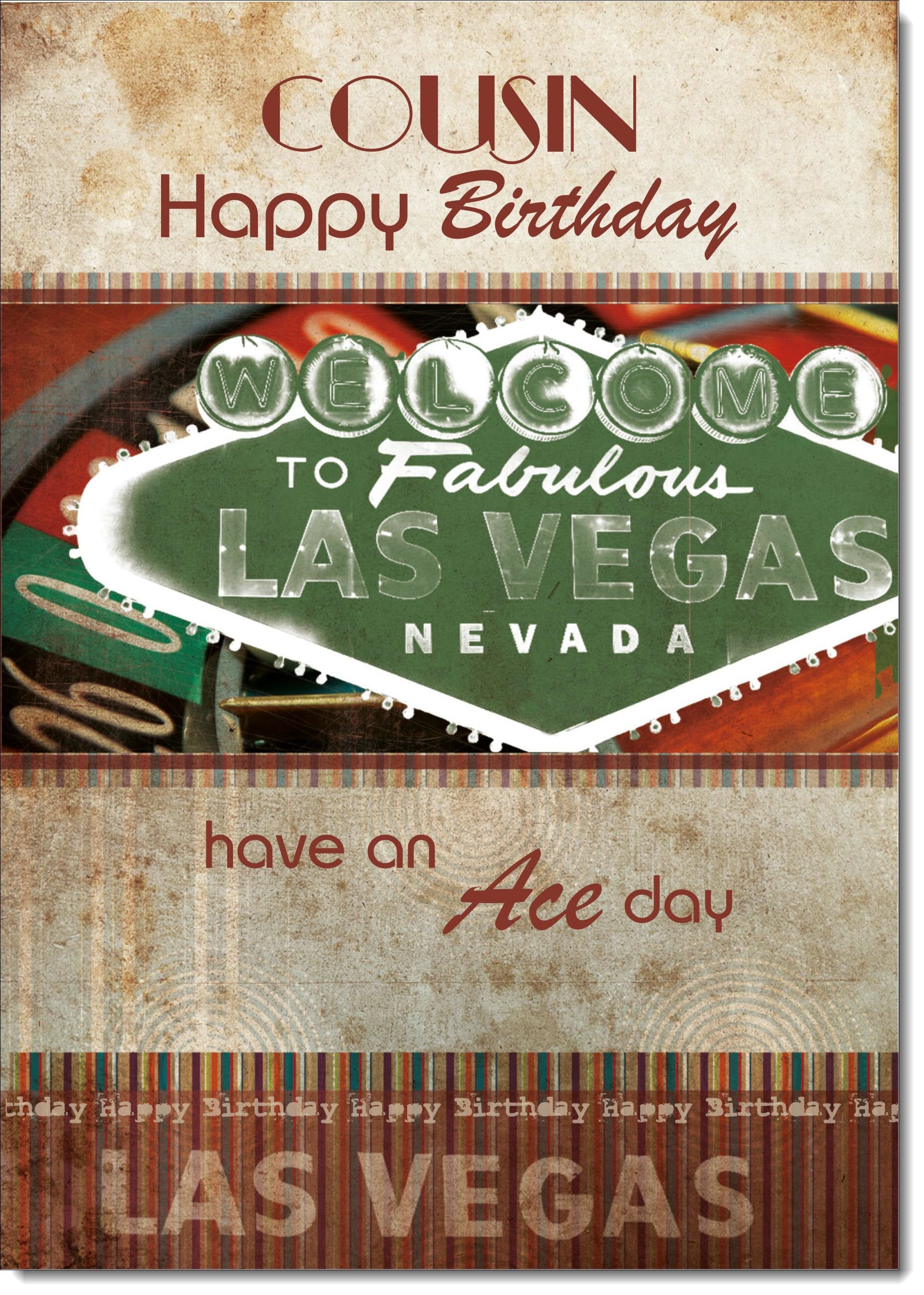 Cousin Birthday Card for Him Las Vegas Sign