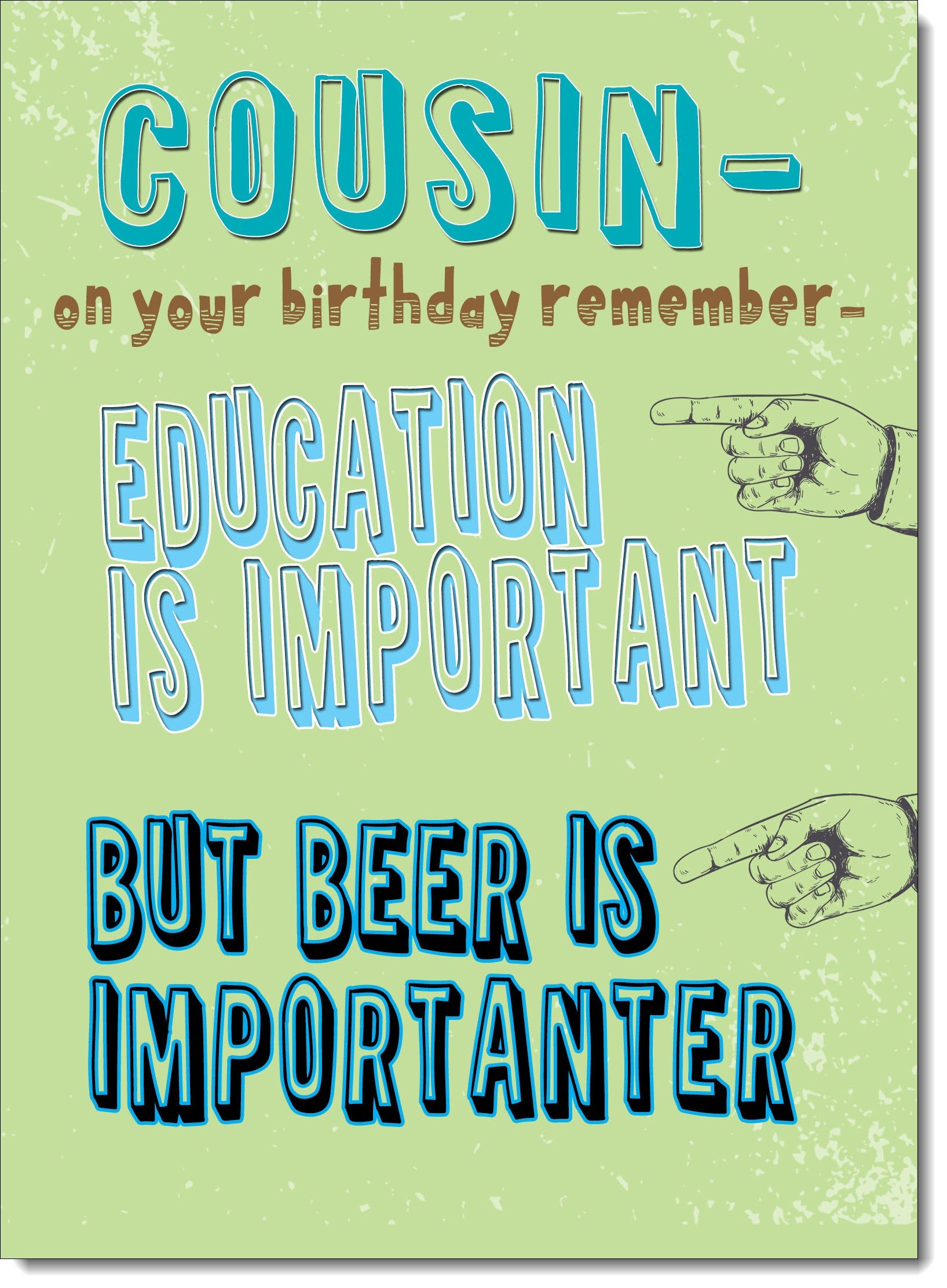 Cousin Birthday Card for Him Funny Beer is Importanter
