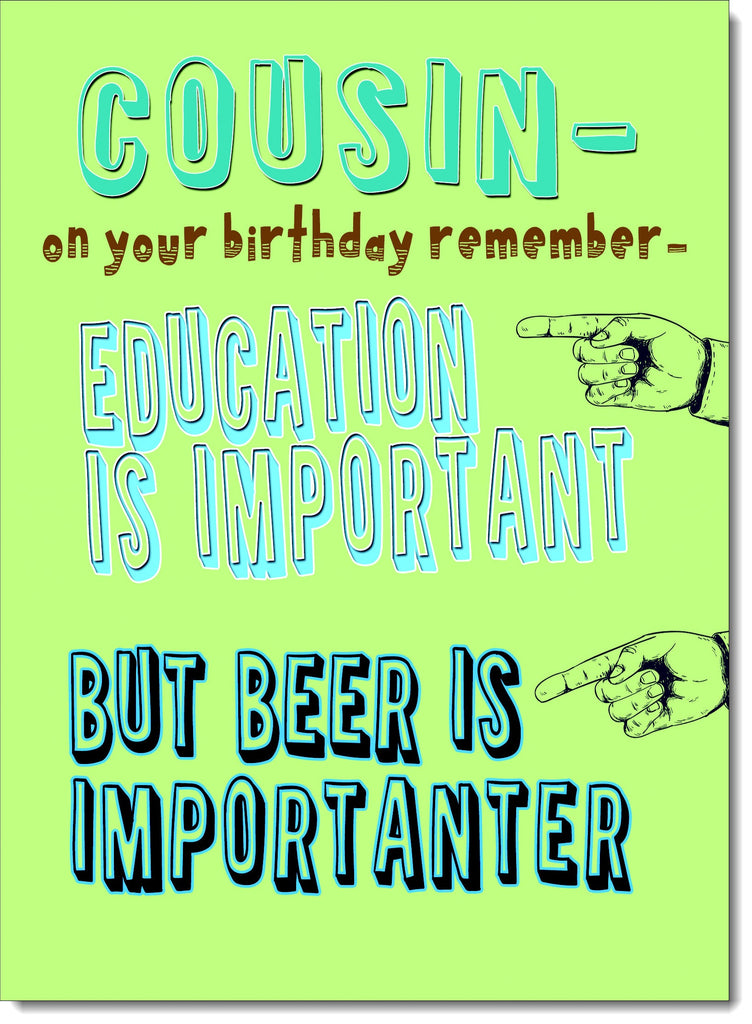 Cousin Birthday Card for Him Funny Beer is Importanter