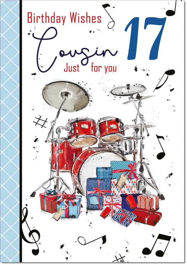 Cousin Male 17th Birthday Card Age 17 Drumkit