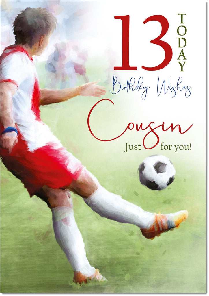 Cousin Male 13th Birthday Card Age 13 Footballer's Trophy