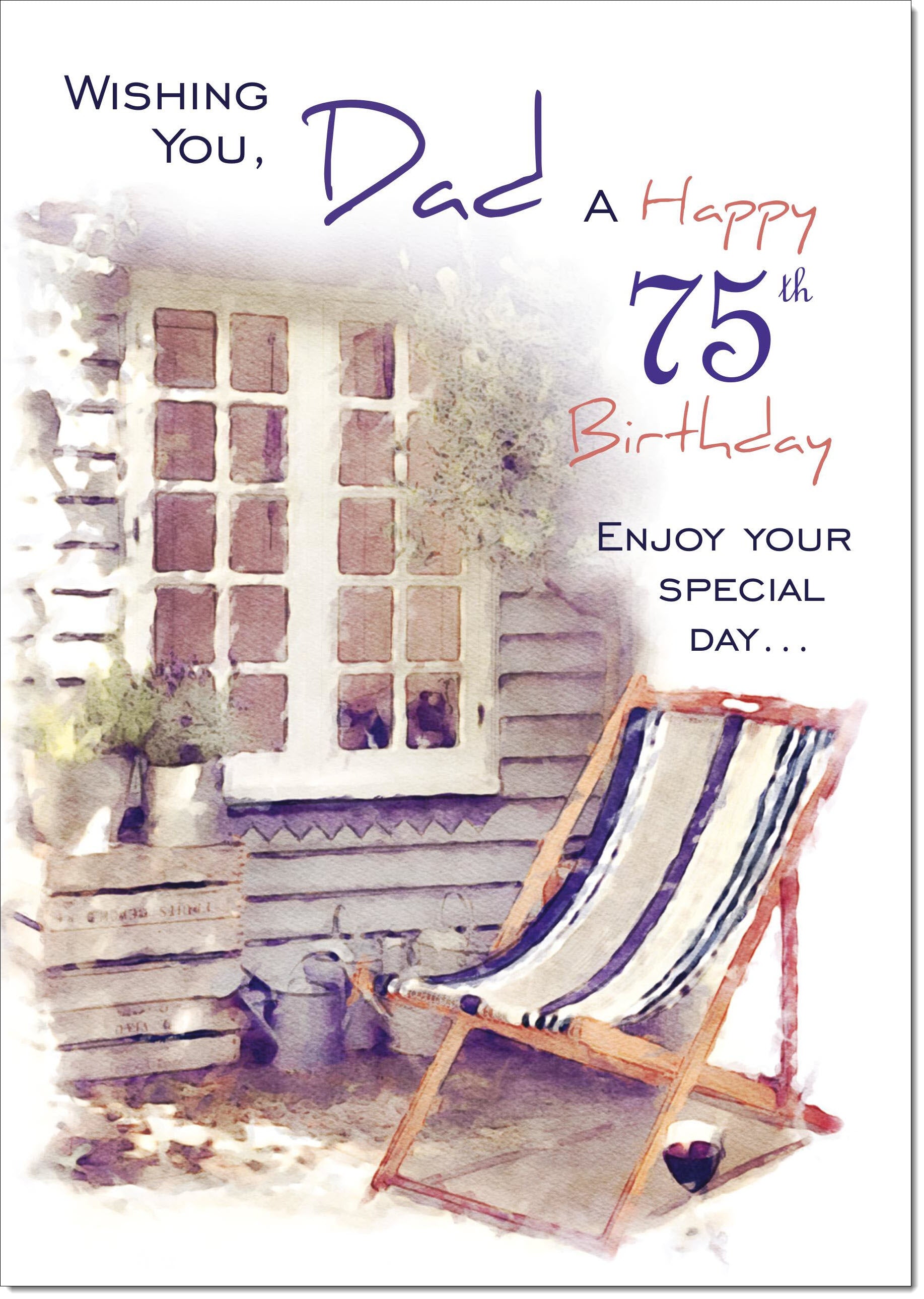 Dad 75th Birthday Card Age 75 Relaxing Deck Chair