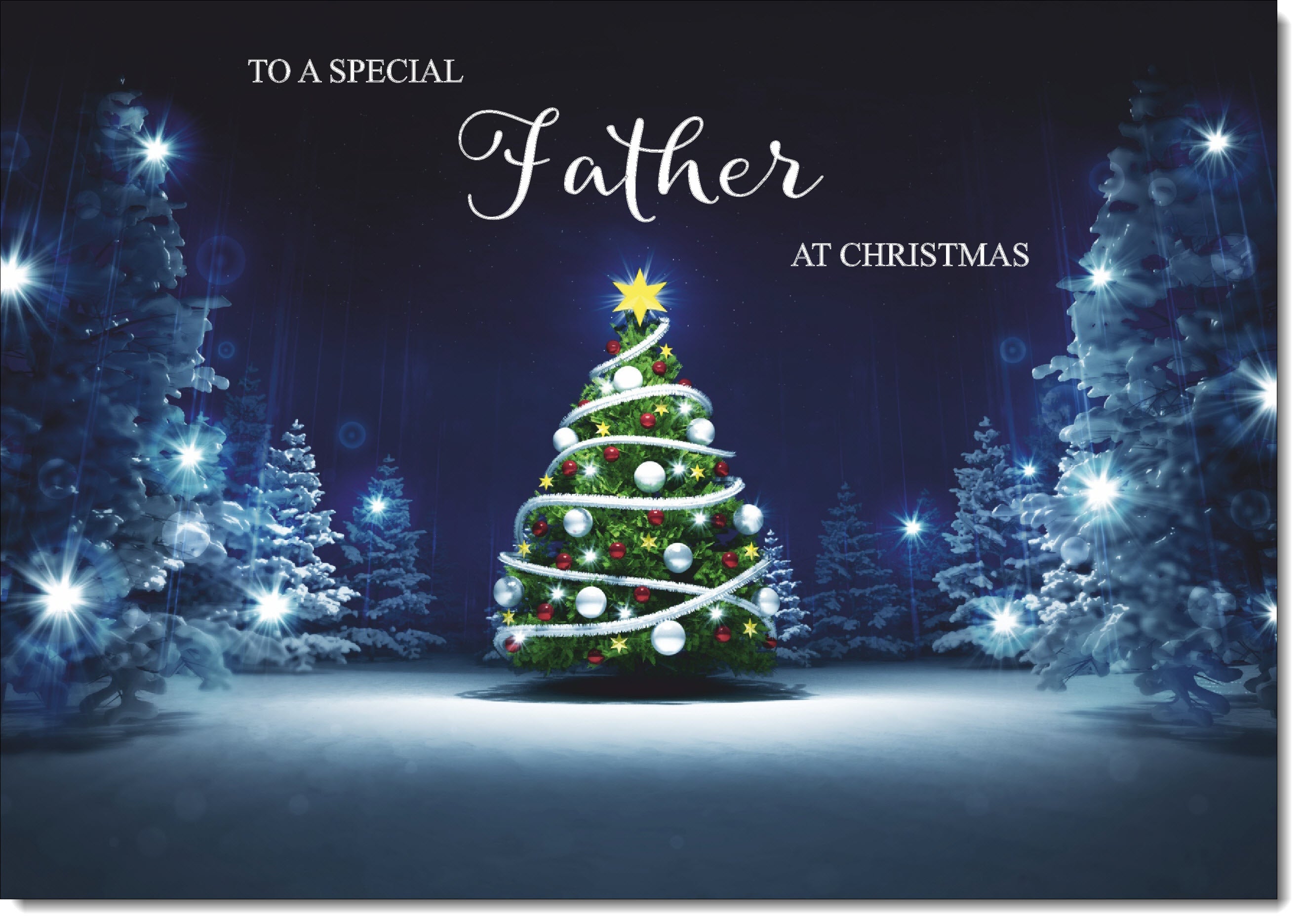 Father Christmas Card Christmas Tree Lights in Dark Sky