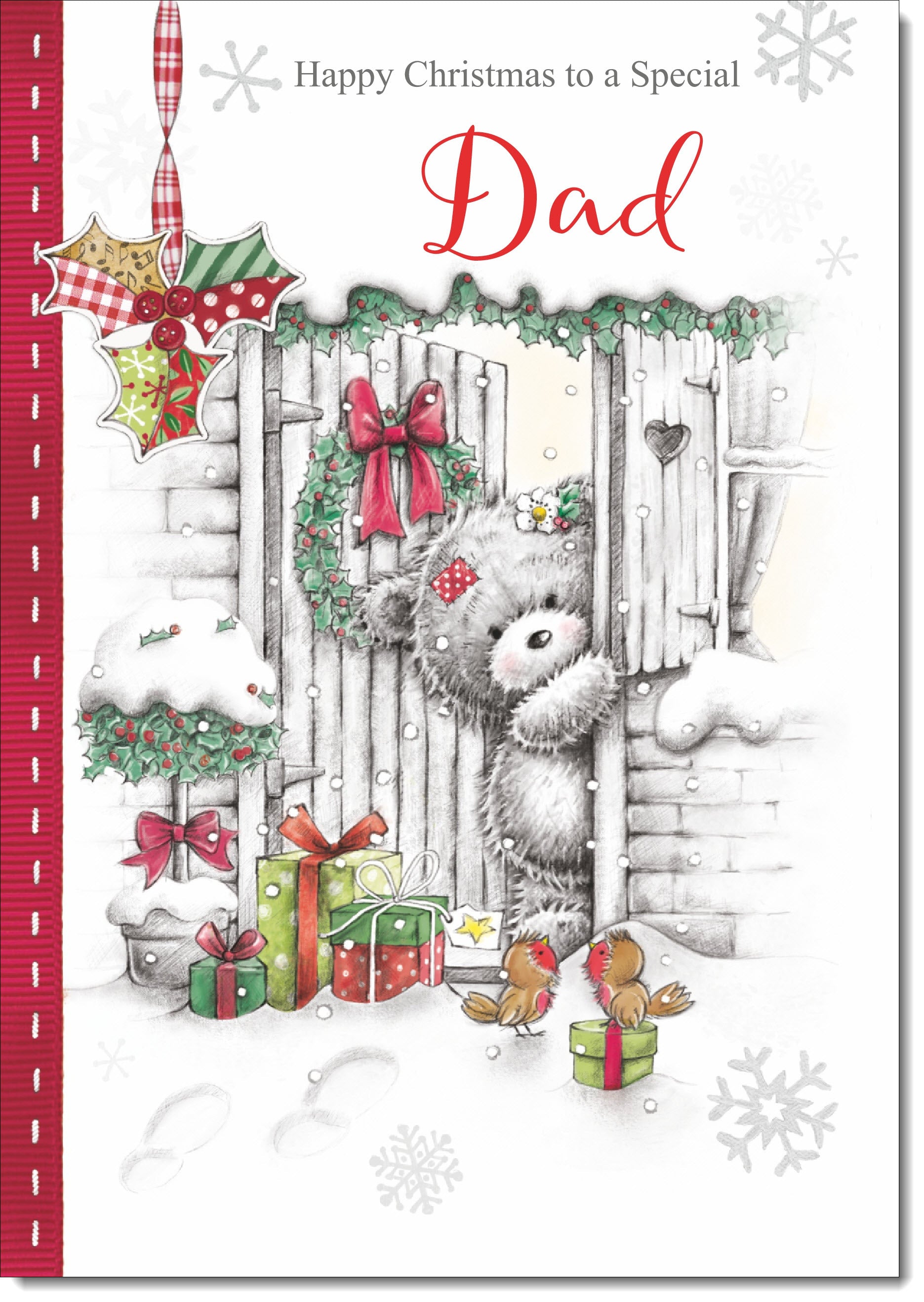 Dad Christmas Card Grey Bear in Snow