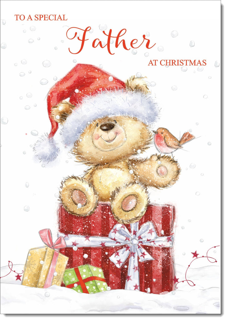 Father Christmas Card Cute Bear on Parcel
