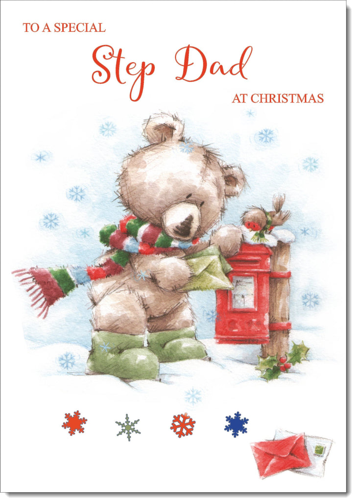 Stepdad Christmas Card Cute Bear at Post Box