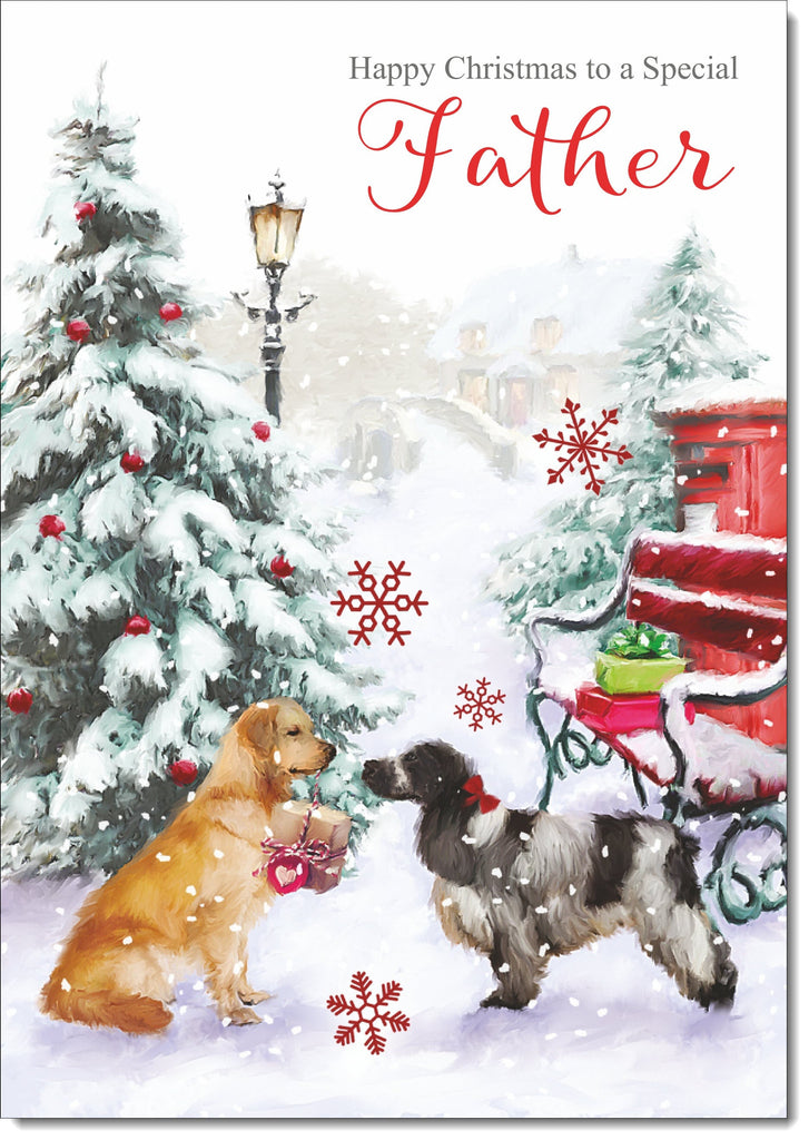 Father-in-Law Christmas Card Two Dogs in Snow