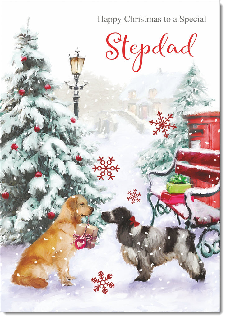 Stepdad Christmas Card Two Dogs in Snow