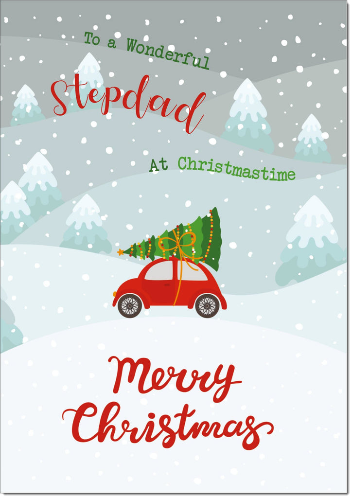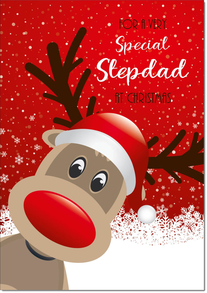Stepdad Christmas Card Fluffy Dog in Santa Hat