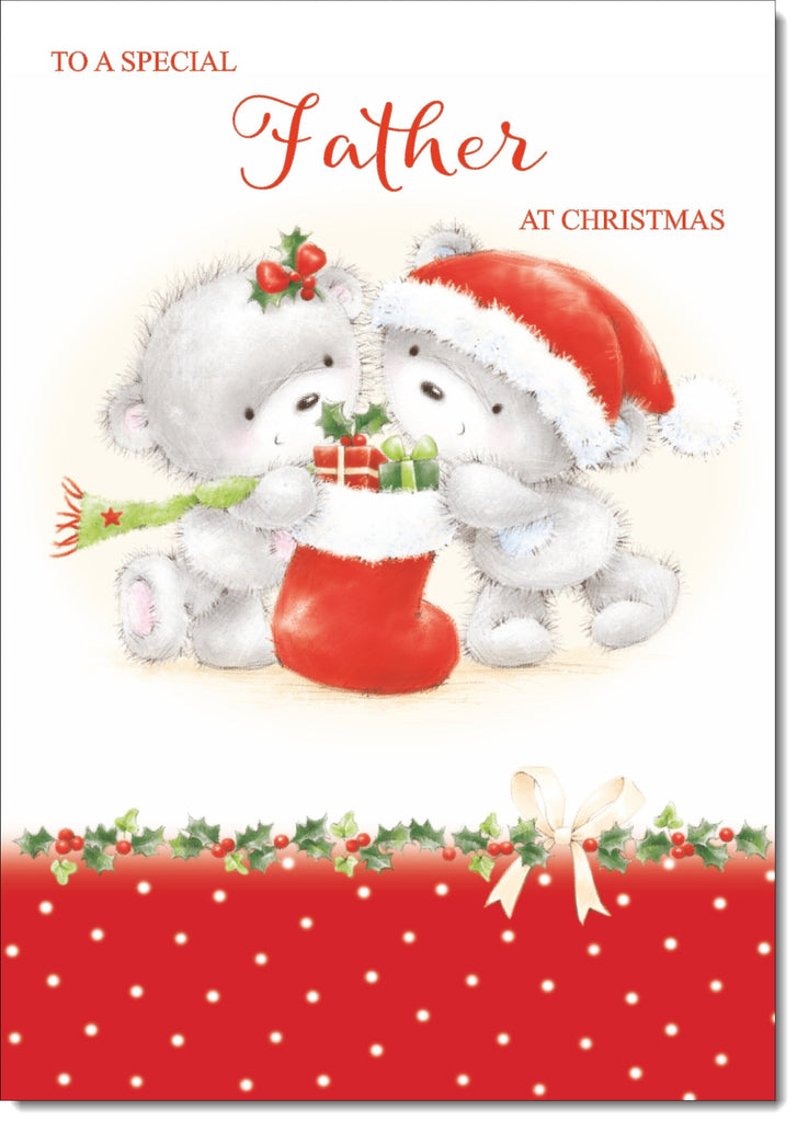 Stepdad Christmas Card Teddy Bear With Red Scarf