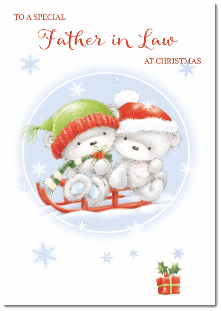 Father-in-Law Christmas Card Two Cute Bears on Sled
