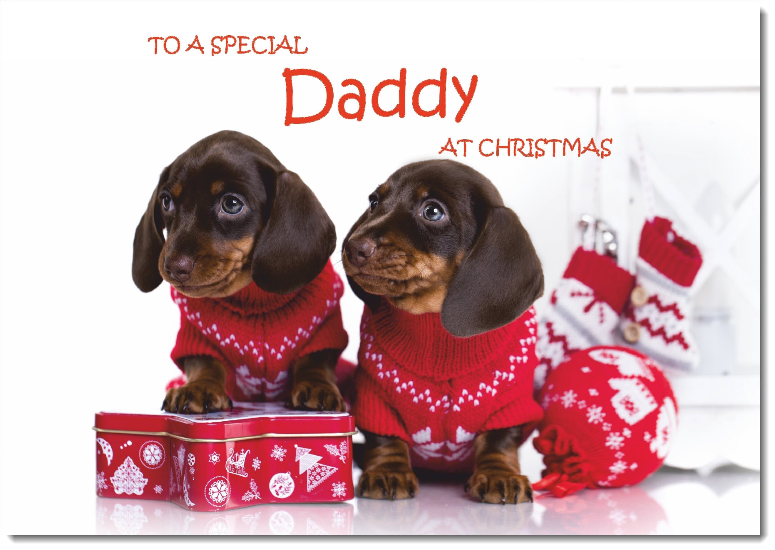 Daddy Christmas Card Dachshund Puppies in Christmas Jumpers