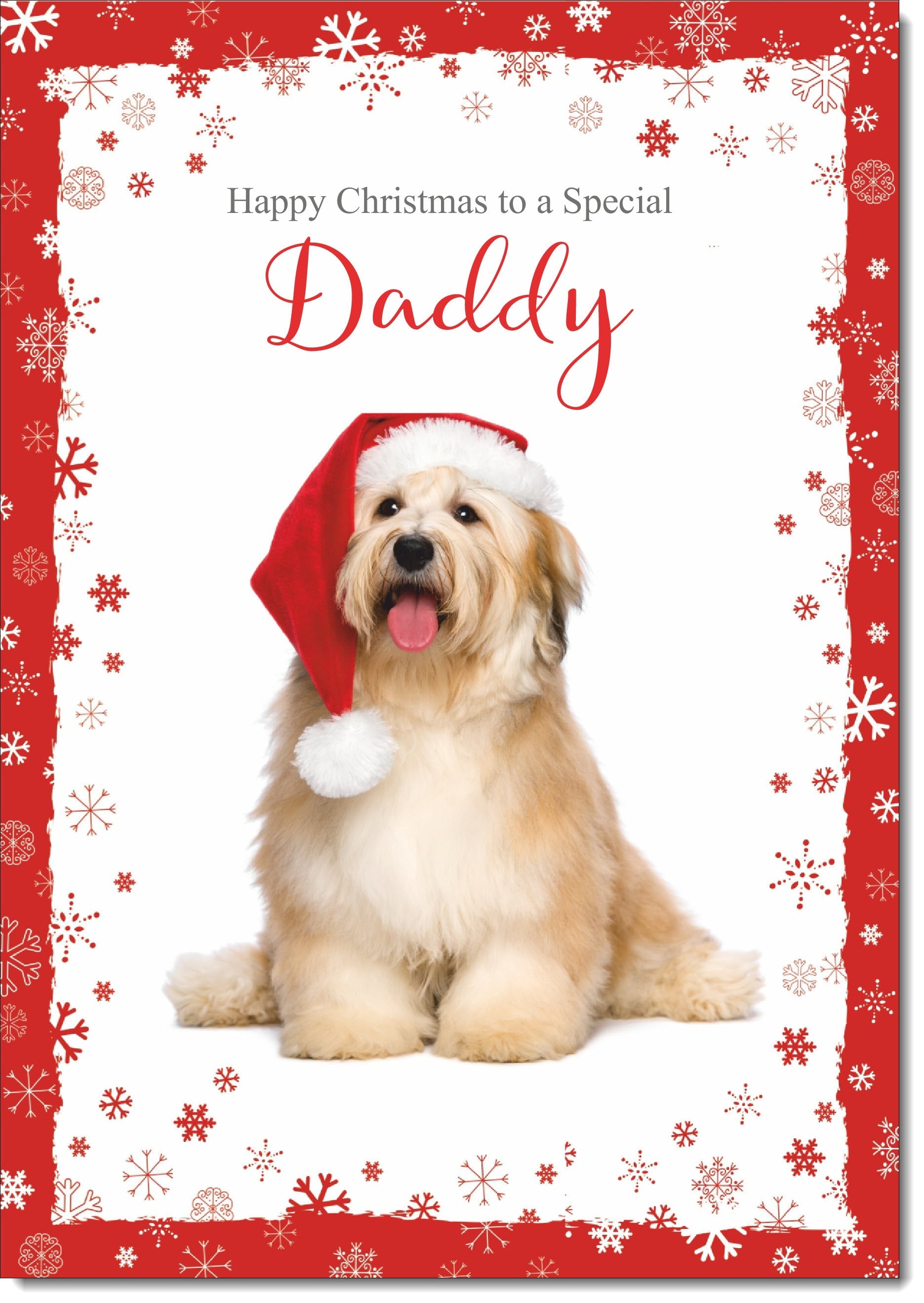 Daddy Christmas Card Fluffy Dog in Santa Hat