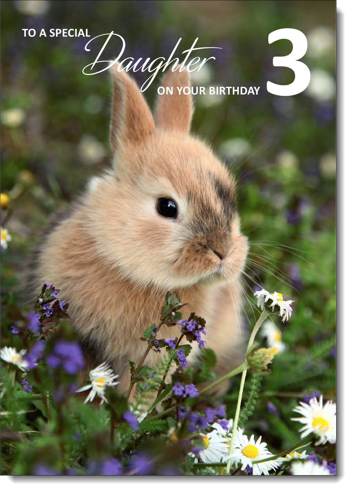 Daughter 3rd Birthday Card Age 3 Bunny Rabbit