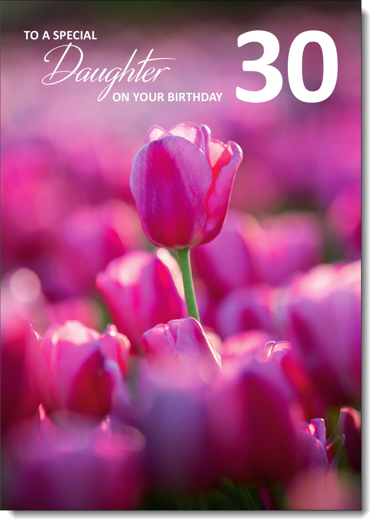 Daughter 30th Birthday Card Age 30 Pink Tulip Field